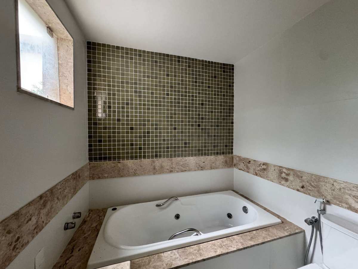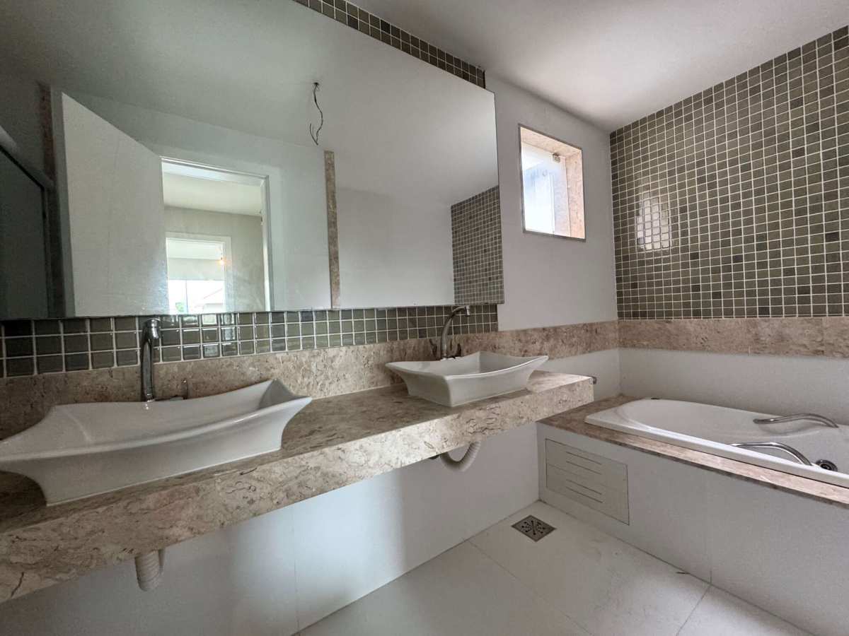 No segundo pavimento, quatro suítes, com destaque para a suíte master com varanda, closet, banheira e pia dupla.