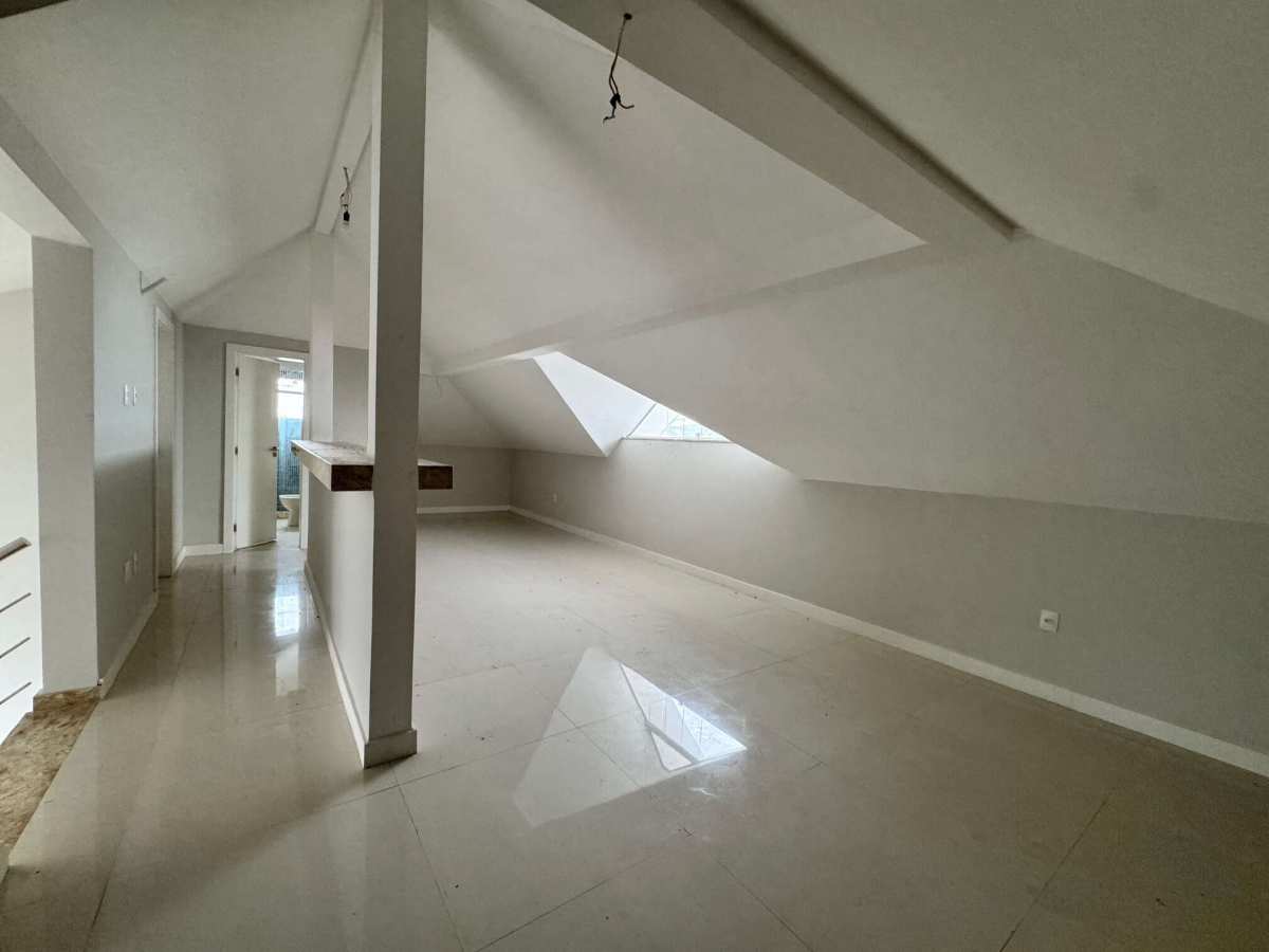 O terceiro pavimento conta com amplo sótão com banheiro completo, ideal para sala de cinema, jogos ou home office.